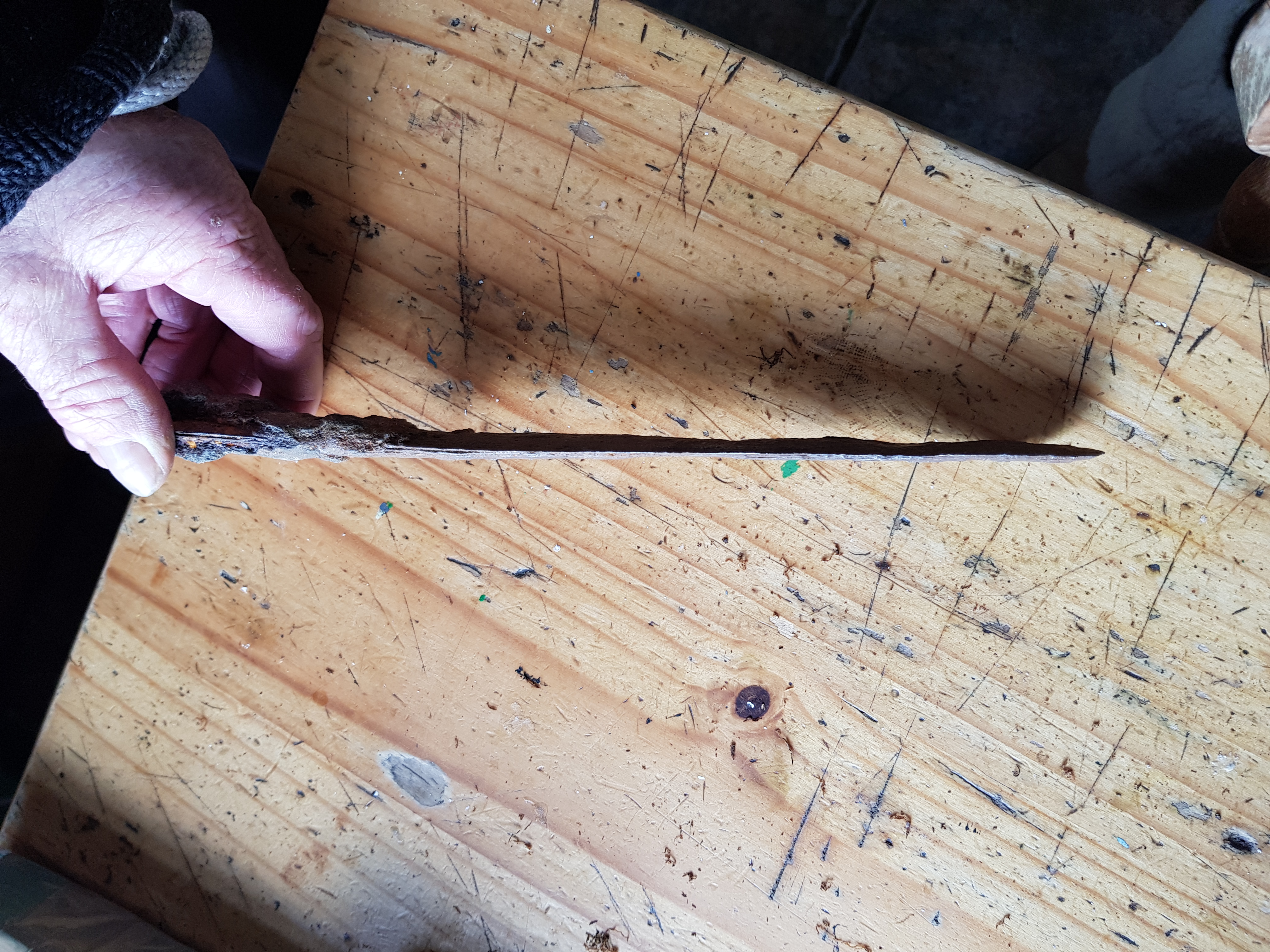 Following consultation with Henry Yallop of The Royal Armouries museum, this object can only be discribed as roughly the shape of a common blade form , i.e. roughly lenticular, and about 25 mm broad. What is not clear is whether it was once the complete blade, or that this is part of one, or alternatively that it was the part of another forged object, and only appears to be blade like.